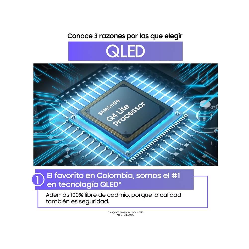 Description: Televisor Samsung FLAT QLED Smart TV 65 pulgadas, UHD 4K /3,840 x 2,160 / DVB-T2 / Procesador Q4 lite/ Bluetooth / Dual Led / modo ambiente/ Modo Juego/ HDMI x 3 / USB x 1 /LAN/ abre y edita archivos de Office/ Garantía 1 año, Ficha tecnica completa en www.samsung.com.co GRATIS BARRA DE SONIDO
